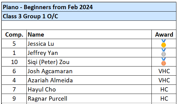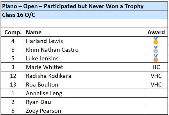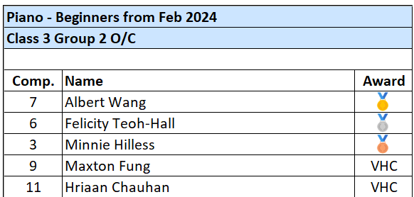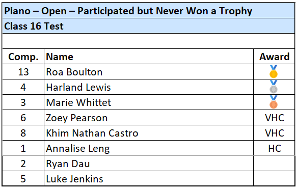 Medals and Certificates can be picked up from the Awards Area which is next to the entrance of the main church area (Area A&B). Your awards will be available soon after results have been published, entered and verfied. Trophy Prizegiving will be held at approximately 5.30pm.